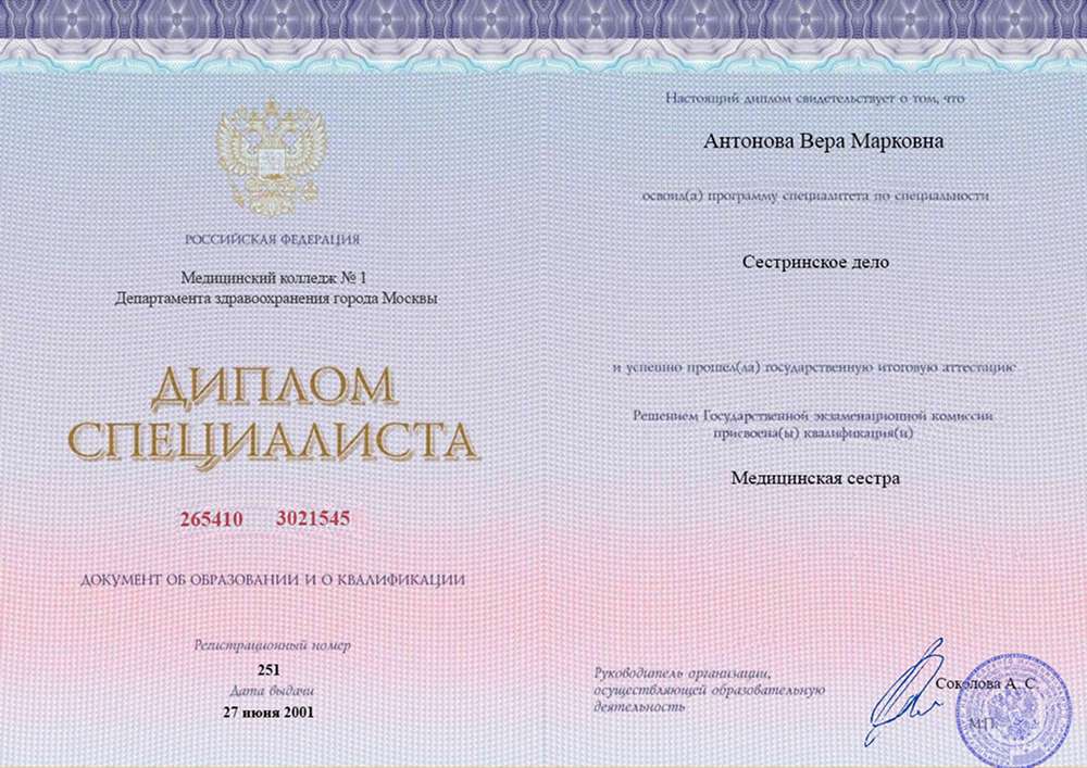 Медицинский колледж № 1 Департамента здравоохранения города Москвы (Сестринское дело)