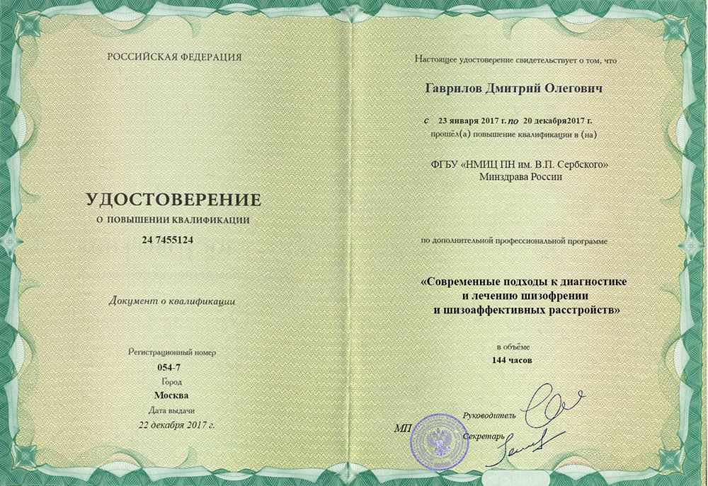 ФГБУ «Национальный медицинский исследовательский центр психиатрии и наркологии им. В.П. Сербского» (Психиатрия)